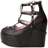 Demonia - POI25-1/BVL - 5"" (12.7cm) Wedge Plateauabsatz, Ankle Boots Plateausohle, Goth Punk Lolita Grunge Wedge Plateauboots, Riemchen im Käfig Form modelliert mit Flach Nieten verziert und mit O-Ringe verbunden, Vorderseite verschieden große hängende O-Ringe mit Pentagramm-Ring. Keilplateau Harness Boots Rückseite geschlossene Ferse Vorderseite geschlossene Zehenpartie, Das Fussbett ist gepolstert mit innensohle für hohen Tragekomfort. Emo Style Damen Boots, Schwarze Obermaterial gefertigt aus Vegane Vinylleder. Fersenreißverschluss befindet sich an der Rückseite über die gesamte Fersenhöhe. Pleaser Demonia Boots sind mit liebe hergestellt!