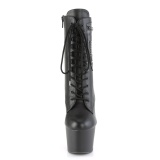 Pleaser - ADO1020PK/BPU/M - 7" (178mm) stiletto high heel, 2 3/4" (70mm) black platform heel, ankle boots high heels with laces through hook eyes. Ankle-high women's boots with platform sole, closed heel at the back, closed toe at the front. A side pocket with a zipper is sewn into the boot shaft. The footbed is padded with an insole for high wearing comfort. Platform lace-up ankle boots, black upper made of vegan vinyl leather. Zipper is on the side over the entire shaft height. Perfect pole dance boots, exotic GoGo dance shoes. Pleaser high heels are made with love!