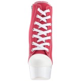 Pleaser - DEL600SK-02/RCA/NW - 6 "" (152mm) high heel, 1 3/4 "" (45mm) reflective white platform heel, open toe chucks high heels ankle boots with reflective platform sole and laces. Closed heel at the back, open toe at the front. Women's lace-up ankle boots in sneaker style, side air vents decorated with chrome eyelets. The footbed is padded with an insole for high wearing comfort. Ankle-high chucks boots, red upper made of canvas linen fabric. Zipper is on the side along the entire shaft height. Perfect pole dance boots, exotic GoGo dance! Pleaser high heels boots are made with love...