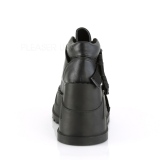Demonia - STO15/BVL - 4 3/4 "" (12cm) wedge platform sole, alternative women's boots wedge heel platform with embossing. Demonia platform ankle boots, front decorative plate decorated with round fan and two straps with plug fastener. Ankle-high boots, back closed heel with padded shaft end. Front closed toe area, the footbed is padded with an insole for high wearing comfort. Festival Rave Goth Punk Lolita Grunge Emo Cyberpunk Cosplay Alternative Style Women's Wedge Boots, black upper made of vegan vinyl leather in a honeycomb pattern. Pleaser Demonia boots are made with love!