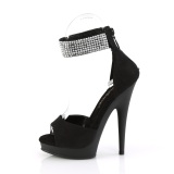 Fabulicious - SUL625/BFS/M - 6" (152mm) high heel, 1" (25mm) black platform heel, D'Orsay sandals high heels, ankle cuff covered with rhinestones. Elegant ankle-high sandals, closed heel at the back, open toe at the front, free opening on the side in D'Orsay style. The footbed is padded with an insole. Black upper made of vegan faux suede. Heel zipper is located on the back over the entire heel height. Pleaser Fabulicious high heels shoes are made with love!