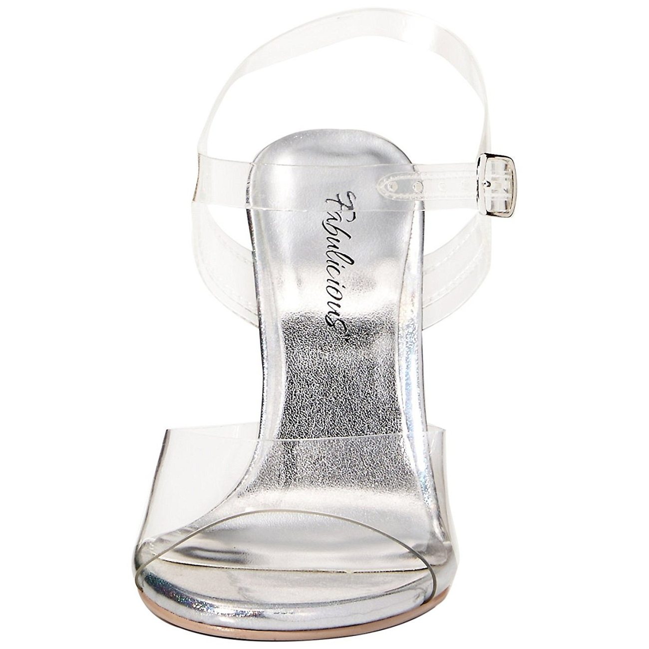 Fabulicious - CLE408MG/C - 4 "" (10.2 cm) high heel, 1/4 "" (0.6 cm) mini platform, elegant sandals high heels with ankle strap and buckle closure, the footbed is padded with an insole for high wearing comfort, toe area lined with a silver sole. Transparent women's high heels with a wide acrylic glass heel stained with colorful glitter dust and a narrow platform sole. Upper material made of transparent vinyl film. Bikini competition high heels, bikini posing shoes and bodybuilding high heels. Pleaser Fabulicious shoes are made with love!
