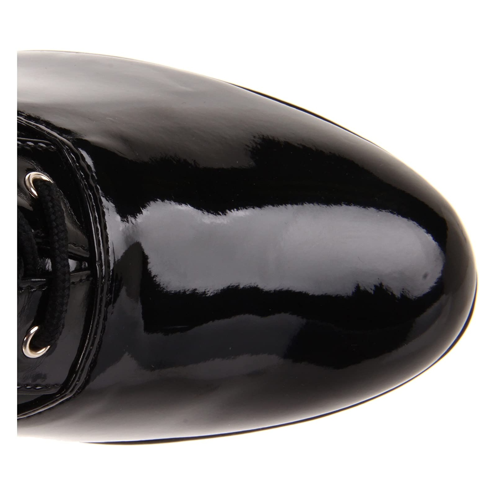 Pleaser - ELE2023/B - 5 "" (12.7 cm) chunky heel, 1 1/2 "" (3.8 cm) black platform heel, retro platform boots with laces through hook eyes. Cosplay lace-up boots with chunky heels, the footbed is padded with an insole for high comfort. Knee-high patent leather boots for festival rave goth punk lolita grunge emo cyberpunk alternative retro ABBA queen 70s - 80s disco style boots with platform, closed heel at the back, closed toe at the front. Chunky platform women's boots, black upper made of shiny patent leather. Zipper is on the side over the entire shaft height. Pleaser boots are made with love!
