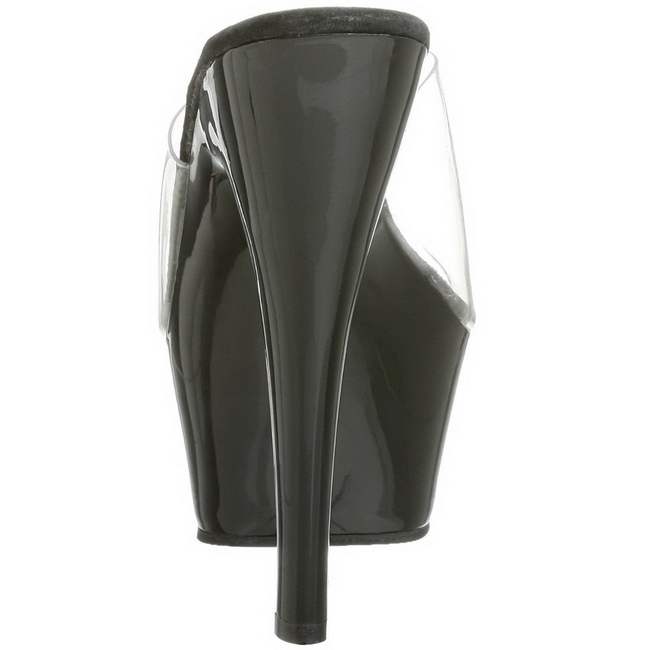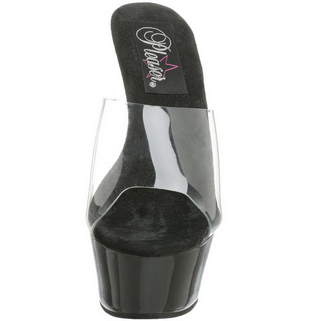 Pleaser - KISS201/C/B - 6" (152mm) high heel, 1 3/4" (45mm) black platform heel, peep toe mules high heels. Transparent platform women's shoes with platform sole for home or party. Elastic upper made of clear vinyl film. Pleaser mules are made with love!