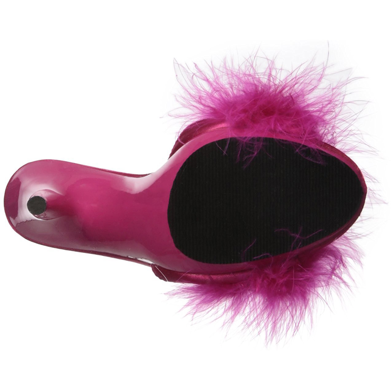 Fabulicious - POISE501F/HPSA/M - 5" (12.7 cm) high heel, 3/8" (1 cm) fuchsia platform heel, mules high heels mini platform, front open toe with marabou feathers. The footbed is padded with an insole for high wearing comfort. Women's mules for home or parties, fuchsia upper made of vegan vinyl leather. Pleaser Fabulicious shoes are made with love!