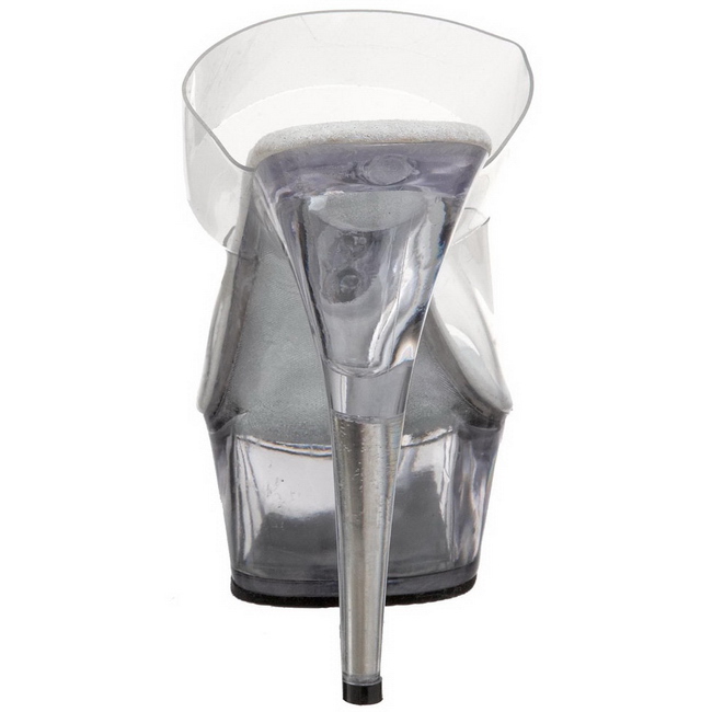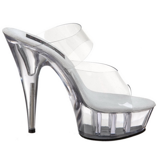 Pleaser - DEL602/C/M - 6" (152mm) high heel, 1 3/4" (45mm) transparent platform heel, women's mules high heels with acrylic glass platform sole for home or party. Upper material made of transparent vinyl film with double straps. Pleaser mules are made with love!