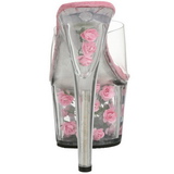 Pleaser - ADO701FL/C/HP - 7" (178mm) stiletto high heel, 2 3/4" (70mm) transparent pink flower platform heel, extravagant mules high heels, transparent acrylic glass platform sole filled with small rose flowers. The footbed is padded with an insole for high wearing comfort. Platform women's shoes mules for home or parties, upper material made of transparent vinyl film. Pleaser high heels shoes are made with love!