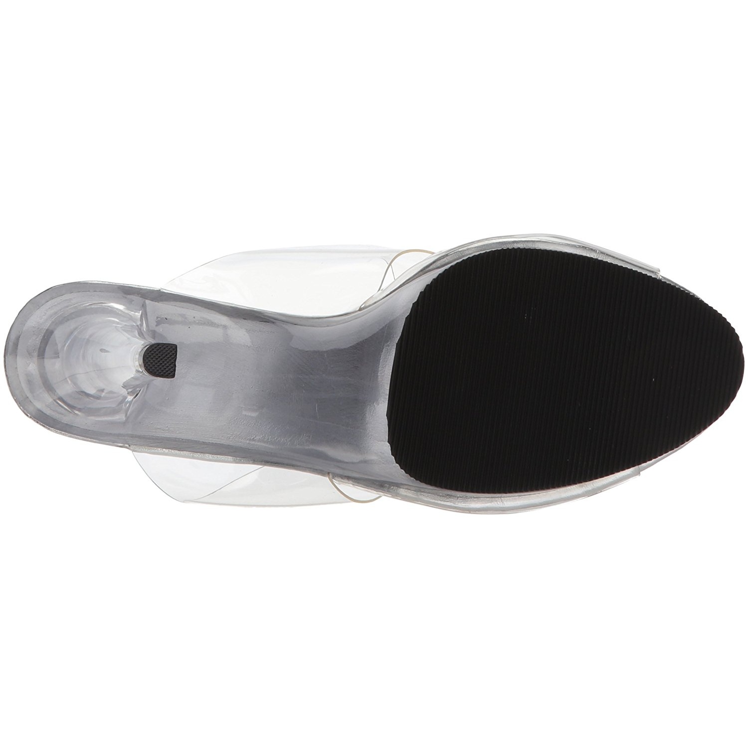 Fabulicious - FLA402/C/M - 4 1/2 "" (11.4cm) high heel, 1/2 "" (1.3 cm) transparent platform heel, women's mules high heels with double straps, platform sole made of acrylic glass. Super elegant mules for home or parties, the footbed is padded with an insole for high wearing comfort. Upper material made of transparent vinyl film. Pleaser shoes are made with love...