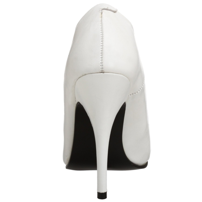 Pleaser - VAN420/W - 4" (10.2 cm) low heel, women's pumps for every occasion! Classic patent pumps with low high heels and flat sole. Closed heel at the back, pointed toe at the front. The footbed is padded with an insole for high wearing comfort. Women's shoes pumps high heels, white upper made of shiny patent leather. Pleaser shoes are made with love!