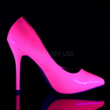 Pleaser - AMU20/NFS - 5" (12.7cm) stiletto heel 3/8" (1cm) hidden platform, neon stiletto pumps platform sole not visible from the outside. Closed heel at the back, pointed toe at the front. Elegant pointed toe high heels patent leather pumps, the footbed is padded with an insole for high wearing comfort. Fuchsia reflective women's shoes upper made of vinyl leather. Pleaser high heels pumps shoes are made with love!