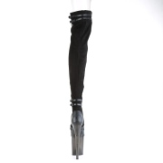 Pleaser - FLAM3027/BFS-PU/B - 8" (200mm) heel, 4" (100mm) black tinted platform heel, open toe overknee lace-up boots high heels with acrylic glass platform, thigh and ankle decorated with two adjustable ankle straps and buckle closures. Extreme platform overknees with laces on the entire boot shaft, closed heel at the back, open toe at the front. The footbed is padded with an insole for high wearing comfort. Platform overknee boots for women, lacing strip, heel cap and straps made of vinyl strips. Black upper made of vegan synthetic suede. Zipper is on the side over the entire shaft height. Perfect pole dance boots, exotic GoGo dance boots! Pleaser overknees are made with love...