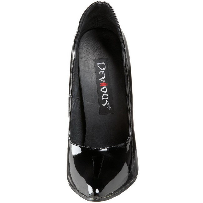 Devious - SCR01/B - 6 "" (15,2 cm) Metallabsatz Spike High Heels, Spitze Stilettos Pumps für Fetisch Partys. Rückseite geschlossene Ferse Vorderseite Spitzer Zehenpartie. Schwarze Lackpumps mit Spike Chromabsatz, Das Fussbett ist gepolstert mit Innensohle für hohen Tragekomfort. Hohe Damenschuhe Stilettos, Schwarze Obermaterial gefertigt aus glänzende Lackleder. Pleaser Devious Schuhe, Fetischisten und Dominas lieben Devious USA!