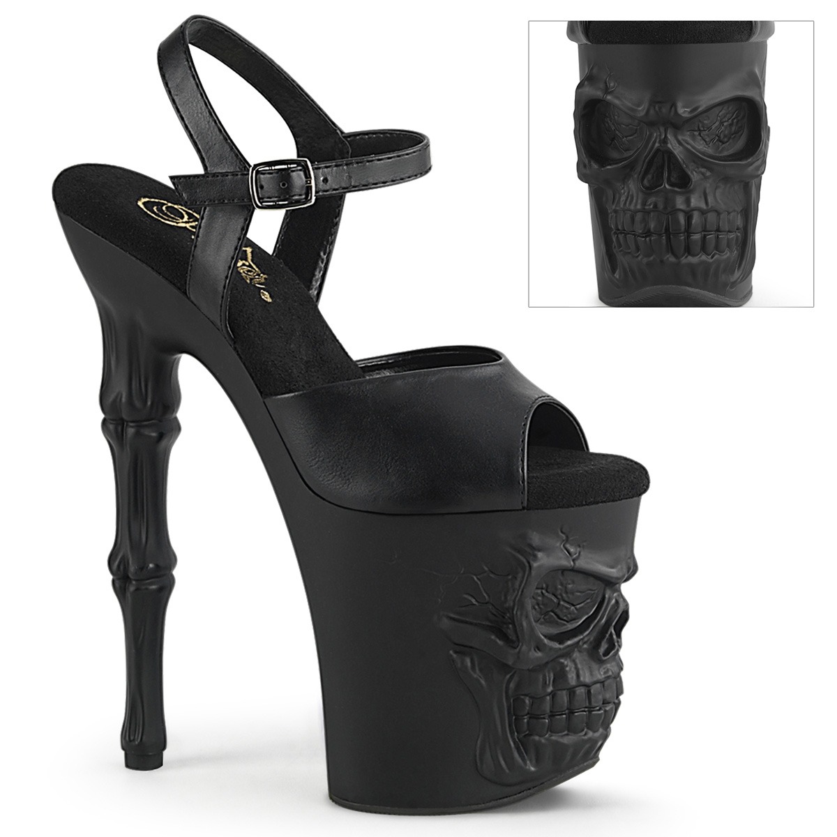 Pleaser - RAPT809/BPU/M - 8"" (200mm) Fingerknochen High Heels, 4"" (100mm) Schwarze Plateauabsatz, High Heels Plateausandaletten verstellbare Knöchelriemen mit Schnallen. Damenschuhe High Heels Absätze in Knochen Form, Plateausohle Vorderseite mit herausgeformte Totenkopf. Platform Sandaletten, Rückseite offene Ferse vorne offene Zehenpartie. Das Fussbett ist gepolstert mit Innensohle für hohen Tragekomfort. Schwarze Obermaterial aus Vegane Vinylleder gefertigt. Perfekte Pole Dance Schuhe, Exotic GoGo Tanzschuhe! Pleaser High Heels Schuhe sind mit liebe hergestellt...
