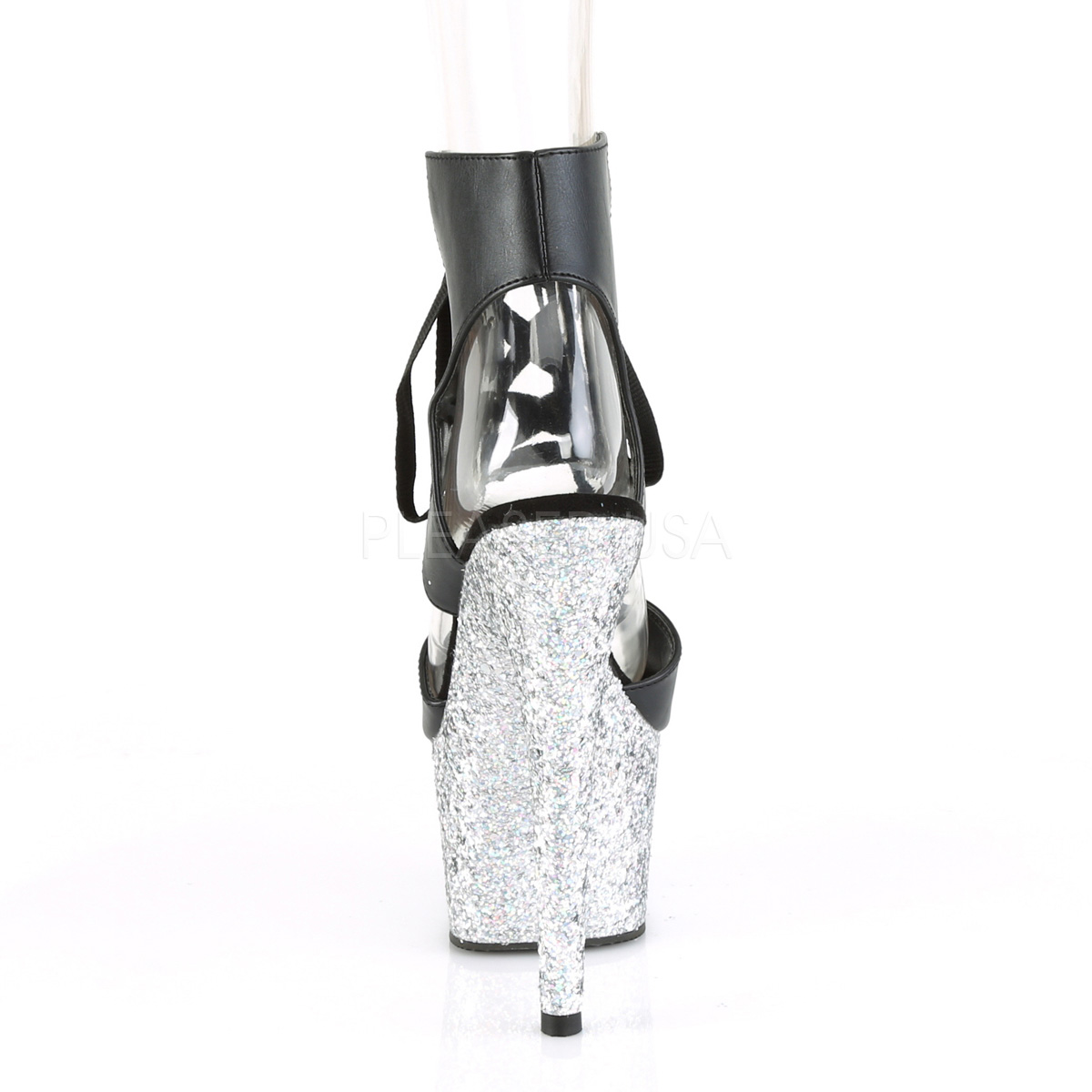 Pleaser - ADO700-14LG/BPU/SG - 7" (178mm) Stiletto High Heel Absatz, 2 3/4" (70mm) Glitter Plateauabsatz, Knöchelhohe Sandaletten mit Breite Knöchelmanschette. Schnürsandalen High Heels Plateausohle umhüllt mit Bunte Glitzerstaub. Rückseite offene Ferse Vorderseite offene Zehenpartie mit Schnürband durch D-Ring ösen geschnürt. Platform Sandaletten für Damen, Schwarze Obermaterial gefertigt aus Vinylleder. Pleaser High Heels Schuhe sind mit liebe hergestellt!