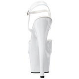 Pleaser - ADO709/W/M - 7" (178mm) Stiletto High Heel Absatz, 2 3/4" (70mm) Weiße Plateauabsatz, Glänzende Lack High Heels mit verstellbare Knöchelriemen und Chrome Schnalle, Rückseite offene Ferse Vorderseite offene Zehenpartie. Extravagante High Heels Sandaletten mit Plateausohle. Das Fussbett ist gepolstert mit Innensohle für hohen Tragekomfort. Platform Damenschuhe Sandaletten, Weiße Obermaterial gefertigt aus glänzende Lackleder. Perfekte Pole Dance Schuhe, Exotic GoGo Tanzschuhe... Pleaser High Heels Schuhe sind mit liebe hergestellt!
