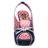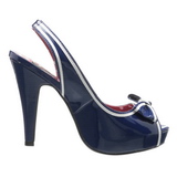 Pin Up Couture - BETT05/NBPT - 4 1/2 "" (11.4cm) High Heel Absatz, 1 "" (2,5 cm) Versteckte mini Plateau, Extravagante Slingback High Heels verstellbare Fersenriemen mit Elastikband. Elegante Damenschuhe SlingPumps mit Versteckte Plateau, Rückseite offene Ferse Vorderseite offene Zehenpartie dekoriert mit große Schleife. Das Fussbett ist gepolstert mit Innensohle für hohen Tragekomfort. Pinup Burlesque Retro Vintage Vogue Rockabilly High Heels Lackpumps, Blaue Obermaterial gefertigt aus glänzende Lackleder mit Weiße Konturstreifen. Pleaser Pin Up Couture Schuhe sind mit liebe hergestellt!