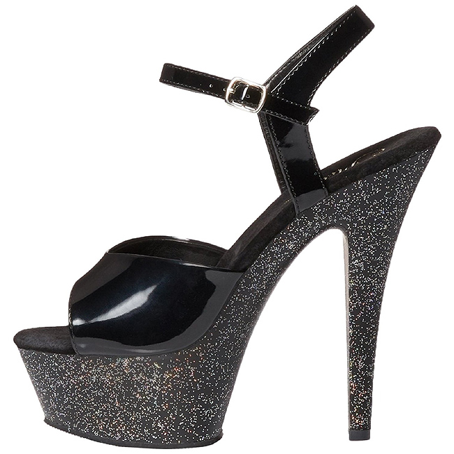 Pleaser - KISS209MG/B/M - 6 "" (152mm) High Heel Absatz, 1 3/4 "" (45mm) Glitter Plateauabsatz, Lack High Heels mit verstellbare Knöchelriemen. Lackleder High Heels Sandaletten mit Plateausohle gefüllt mit Bunte Glitzerstaub, Vorderseite offene Zehenpartie Rückseite offene Ferse. Das Fussbett ist gepolstert mit Innensohle für hohen Tragekomfort. Sexy Damen Sandaletten, Schwarze Obermaterial gefertigt aus glänzende Lackleder. Pleaser High Heels Schuhe sind mit liebe hergestellt!