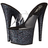Pleaser - ADO701LG/C/BG - 7" (178mm) Stiletto High Heel Absatz, 2 3/4" (70mm) Schwarz Glitter Plateauabsatz, Extravagante Pantoletten High Heels, Plateausohle umhüllt mit Bunte Holographische Glitzerstaub. Das Fussbett ist gepolstert mit Innensohle für hohen Tragekomfort. Platform Damenschuhe Mules für Zuhause oder Partys, Obermaterial gefertigt aus Durchsichtige Vinylfolie. Pleaser High Heels Schuhe sind mit liebe hergestellt!