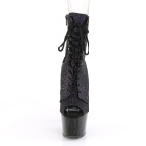 Pleaser - ADO1021MG/PPG/B - 7" (178mm) Stiletto High Heel Absatz, 2 3/4" (70mm) Glitter Plateausohle, Glitzernde Stiefeletten High Heels mit Schnürsenkel durch Haken ösen. Knöchelhohe Schnürboots, Plateauabsatz umhüllt mit Glitzer Punkte, Rückseite geschlossene Ferse Vorderseite offene Zehenpartie. Das Fussbett ist gepolstert mit Innensohle für hohen Tragekomfort. Platform Schnürstiefeletten für Damen, Lila Obermaterial gefertigt aus Vinylleder mit Glitzerstaub umhüllt. Perfekte Pole Dance Boots, Exotic GoGo Tanzschuhe.. Pleaser High Heels sind mit liebe hergestellt!