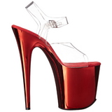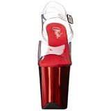 Pleaser - FLAM808/C/RCH - 8"" (200mm) Extrem High Heel, 4"" (100mm) Chrome Rote Plateauabsatz, Transparente High Heels Sandaletten mit verstellbare Knöchelriemen und Schnallenverschluss, Vorderseite offene Zehenpartie Rückseite offene Ferse. Das Fussbett ist gepolstert mit Innensohle für hohen Tragekomfort. Sexy Damenschuhe High Heels mit Verchromte Plateausohle, Elastische Obermaterial gefertigt aus Durchsichtige Vinylfolie. Perfekte Pole Dance High Heels. Exotic GoGo Tanzschuhe! Pleaser Schuhe sind mit liebe hergestellt...