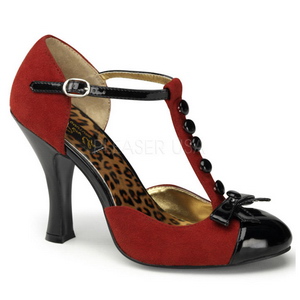 Pin Up Couture - SMITT10/RMCSUE-BPT - 4 "" (10.2cm) Rote Pumps mit niedrige High Heel Absatz, Rockabilly High Heel Pumps mit verstellbare Knöchelriemen und Schnallenverschluss, Vorderseite T-Riemen modelliert mit Zierknöpfe. Rückseite geschlossene Ferse Vorderseite geschlossene Zehenpartie mit glänzende Kappe und Große Schleife, Seitlich freie öffnung in D'Orsay Style. Das Fussbett ist gepolstert mit Leopard Print Innensohle für hohen Tragekomfort. Damenschuhe D'orsay Pumps, Rote Obermaterial gefertigt aus Vegane Kunstwildleder. Pleaser Pin Up Couture Schuhe sind mit liebe hergestellt!