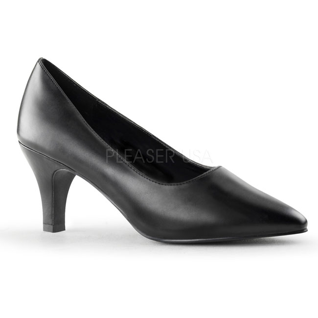 Pleaser Pink Label - DIV420/B/PU - 3 "" (7,6 cm) Mini Block Absatz, Grosse grössen Schwarze Pumps mit niedriger Absatz, Rückseite geschlossene Ferse und Vorderseite geschlossene Zehenpartie. Klassische Pumps für große Füße 39, 40, 41, 42, 43, 44, 45, 46, Große Elegante Pumps mit gepolsterten Innensohle für hohen Tragekomfort. Schwarze Obermaterial gefertigt aus Vegane Vinylleder. Pleaser Pink Label Pumps sind mit liebe hergestellt! Auch für Herren, Damen, Transmann oder Transfrau geeignet..