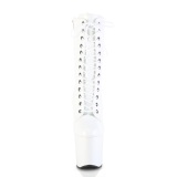 8 "" (200mm) Heelless Absatz, 3 "" (76mm) Pony Plateau, Knöchelhohe Stiefeletten mit Schnürsenkel durch Metallösen. Glänzende Ankle Boots mit Pony Plateausohle und abnehmbarer Clip Absatz, Bei diese Stiefeletten lassen sich die Absätze mit einem Klick abnehmen oder erweitern in Keilabsatz. Rückseite geschlossene Ferse Vorderseite geschlossene Zehenpartie. Ausgefallene Platform Schnürboots mit Heelless Absatz, Zuglasche an der Rückseite. Das Fussbett ist gepolstert mit Innensohle für hohen Tragekomfort. Weiße Obermaterial gefertigt aus glänzende Lackleder. Reißverschluss befindet sich Seitlich an gesamte Schafthöhe. Pleaser Boots sind mit liebe hergestellt!