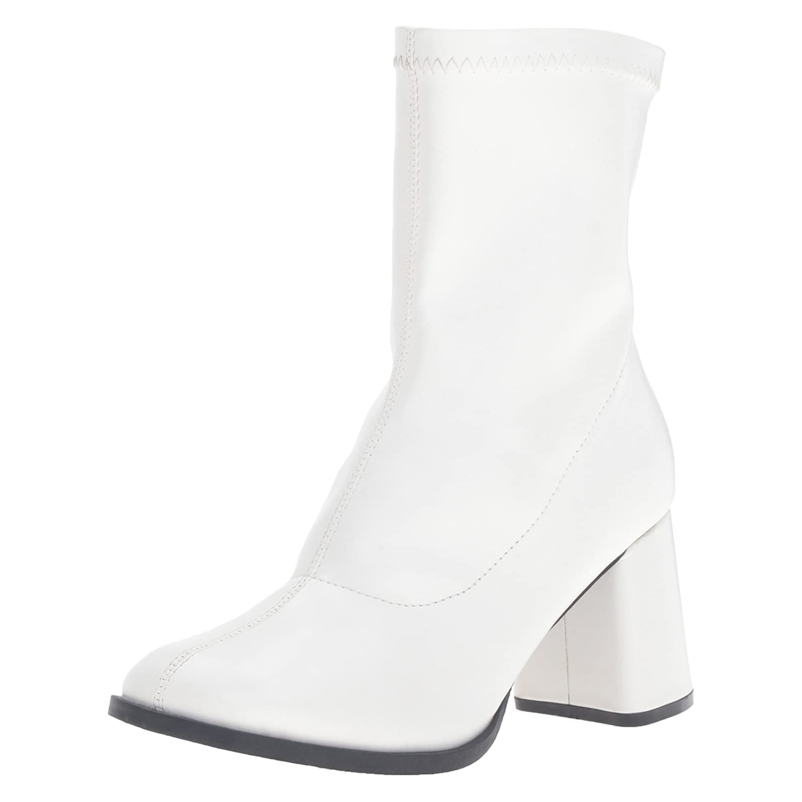 Funtasma - GOGO150/WPU - 3 "" (7,6 cm) Weiße Block Absatz, Ankle Boots mit Elastische Schaft. Knöchelhohe Stiefeletten für Damen, mit niedrige Blockabsatz und flacher Sohle. Rückseite geschlossene Ferse Vorderseite geschlossene Zehenpartie. Das Fussbett ist gepolstert mit Innensohle für hohen Tragekomfort. 70er Jahre Vintage Flower Power Disco Hippie ABBA Style Gogo Boots, Weiße Obermaterial gefertigt aus Stretch Kunstleder. Reißverschluss befindet sich Seitlich über die gesamte Schafthöhe. Pleaser Funtasma Boots sind mit liebe hergestellt!