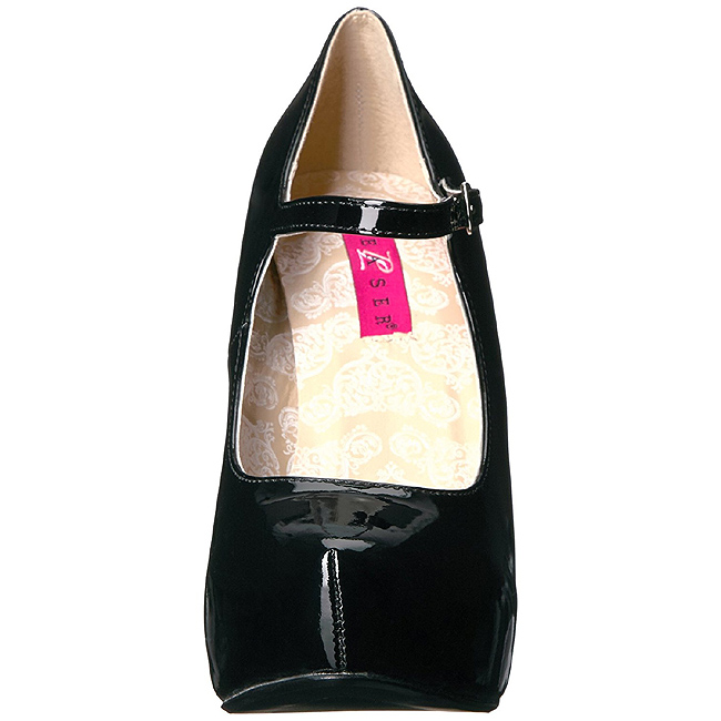Pleaser Pink Label - CHLOE02/B - 5 1/4 "" (13,3 cm) High Heel Absatz, 1 1/4 "" (3,2 cm) Versteckte Plateau, Grosse grössen Plateaupumps High Heels mit Riemchen und Schnallenverschluss Seitlich, Rückseite geschlossene Ferse Vorderseite geschlossene Zehenpartie. Glänzende Mary Jane Pumps für Männer mit große Füße 39, 40, 41, 42, 43, 44, 45, 46, Das Fussbett ist gepolstert mit Innensohle für hohen Tragekomfort. Schwarze Obermaterial aus glänzende Lackleder gefertigt. Platform Lackpumps Auch für Herren, Damen, Dragqueens, Crossdresser, Transmann oder Transfrau geeignet.. Pleaser Pink Label Schuhe sind mit liebe hergestellt!